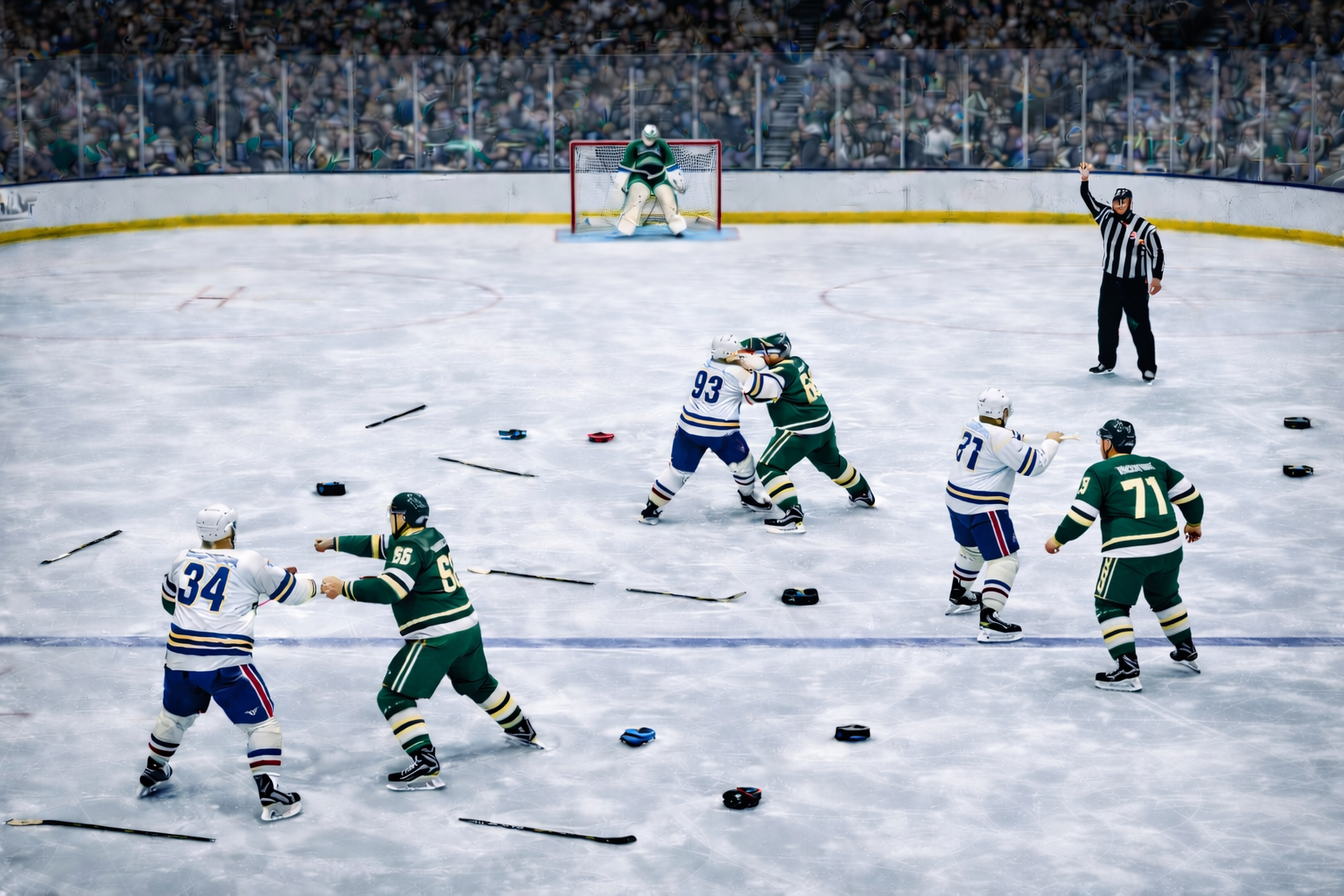 Иногда эмоции выходят из-под контроля и потасовка перерастает в настоящий командный конфликт. Массовые драки в хоккее происходят редко, но такие эпизоды обычно становятся легендарными моментами истории спорта.